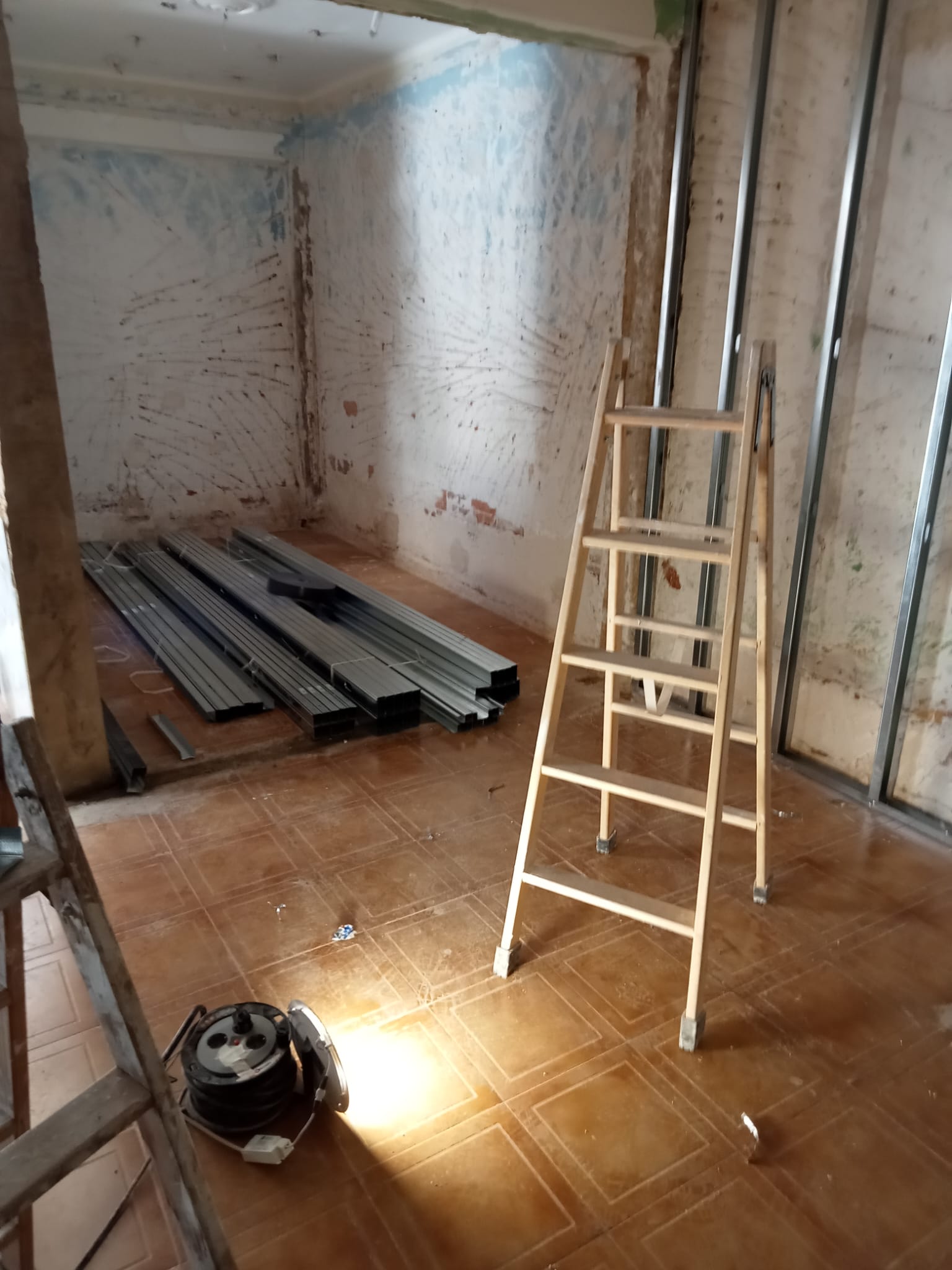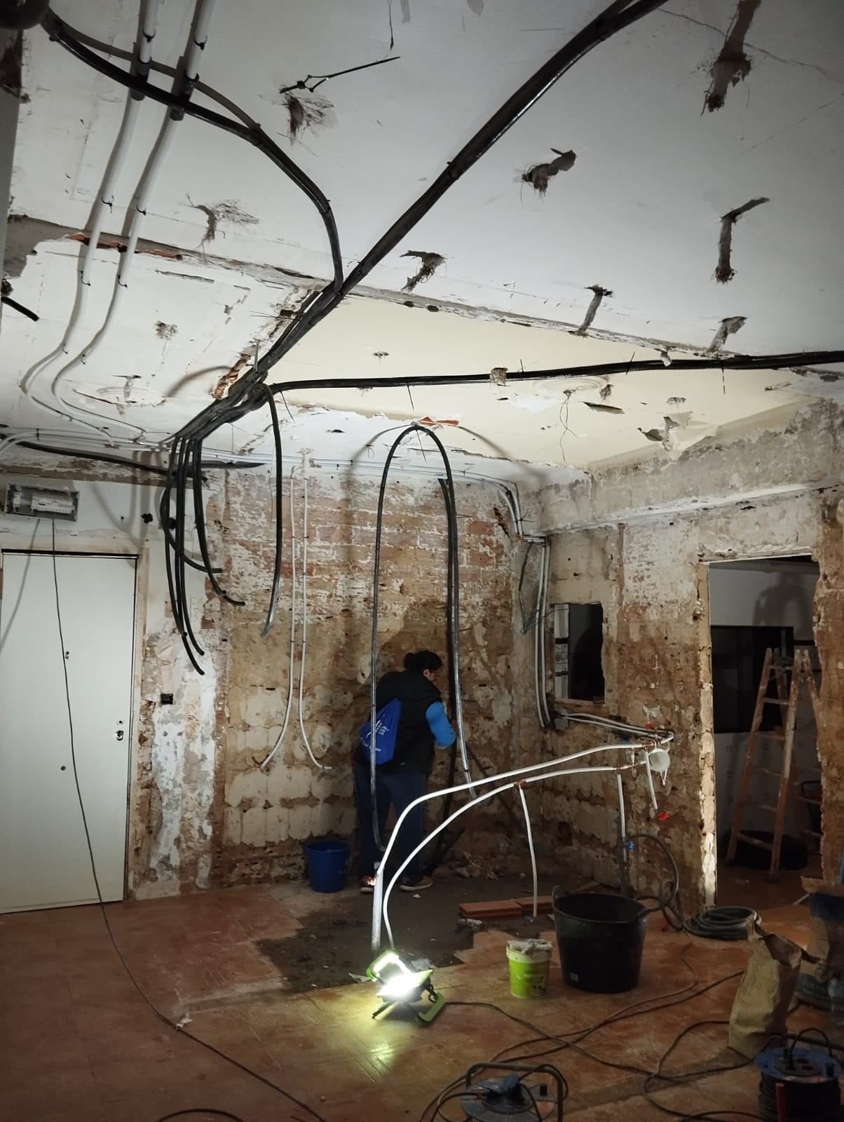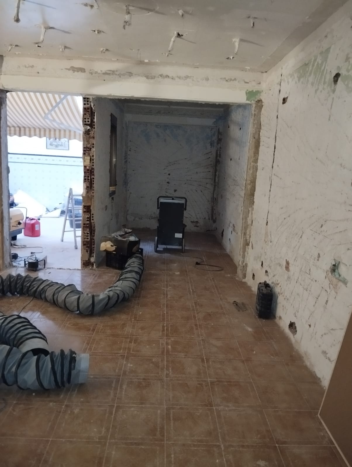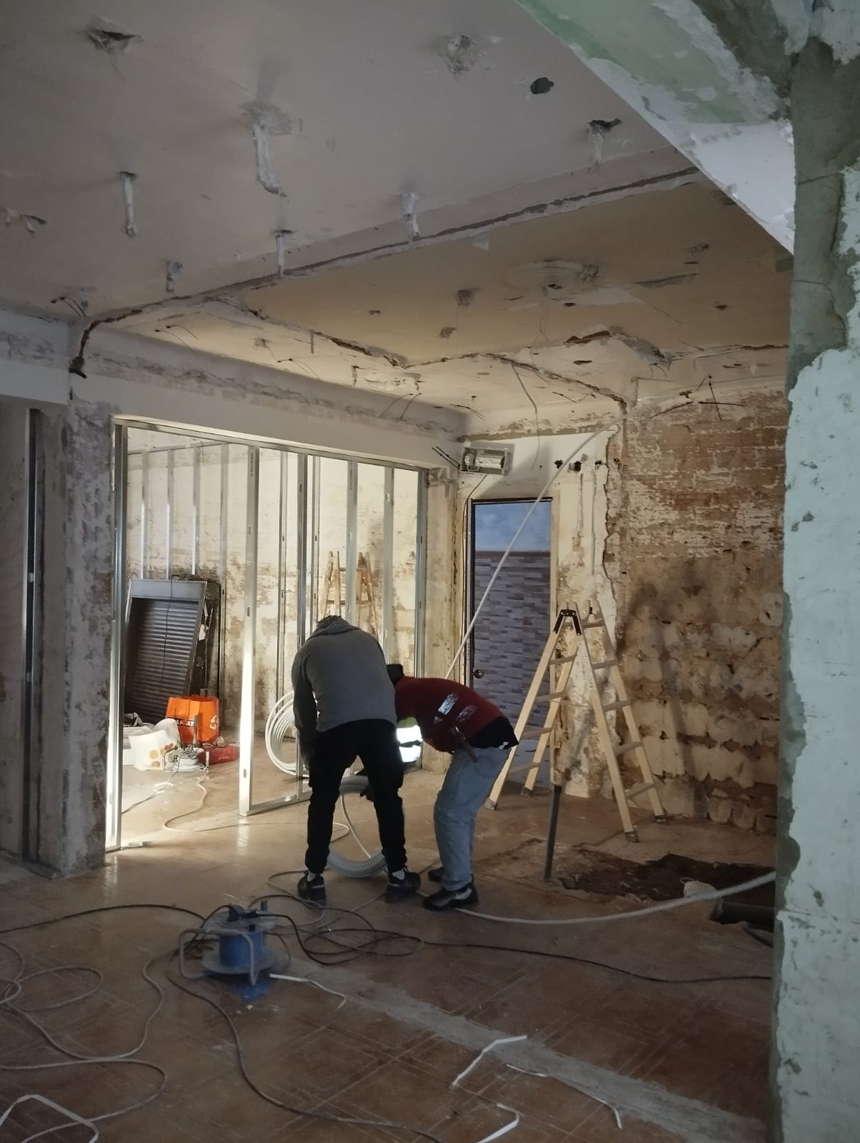 Fundamental realizar reparaciones inmediatas en aquellas áreas que representan un riesgo para la habitabilidad y seguridad de los residentes, como los techos afectados, la instalación eléctrica dañada y la estructura comprometida de la medianera. Restauración de Acabados: Una vez realizadas las reparaciones estructurales necesarias, se debe proceder a la restauración de los acabados de pintura, enlucidos, suelos y techos para devolver a la vivienda su estética y funcionalidad. Se recomienda realizar catas en la medianera para evaluar su estado y determinar las reparaciones requeridas para garantizar su estabilidad y seguridad. Renovación de Carpinterías y Mobiliario: Será necesario reemplazar el mobiliario y carpinteria de todas las puertas de la vivienda. Adquirir mobiliario básico para restablecer la funcionalidad de la vivienda. Restablecimiento de Instalaciones eléctrica y de fontanería. Se deberá realizar una revisión completa de la instalación eléctrica y restablecer el suministro eléctrico en todas las áreas de la vivienda. En resumen, se requiere una intervención integral para devolver a la vivienda su habitabilidad y funcionalidad.