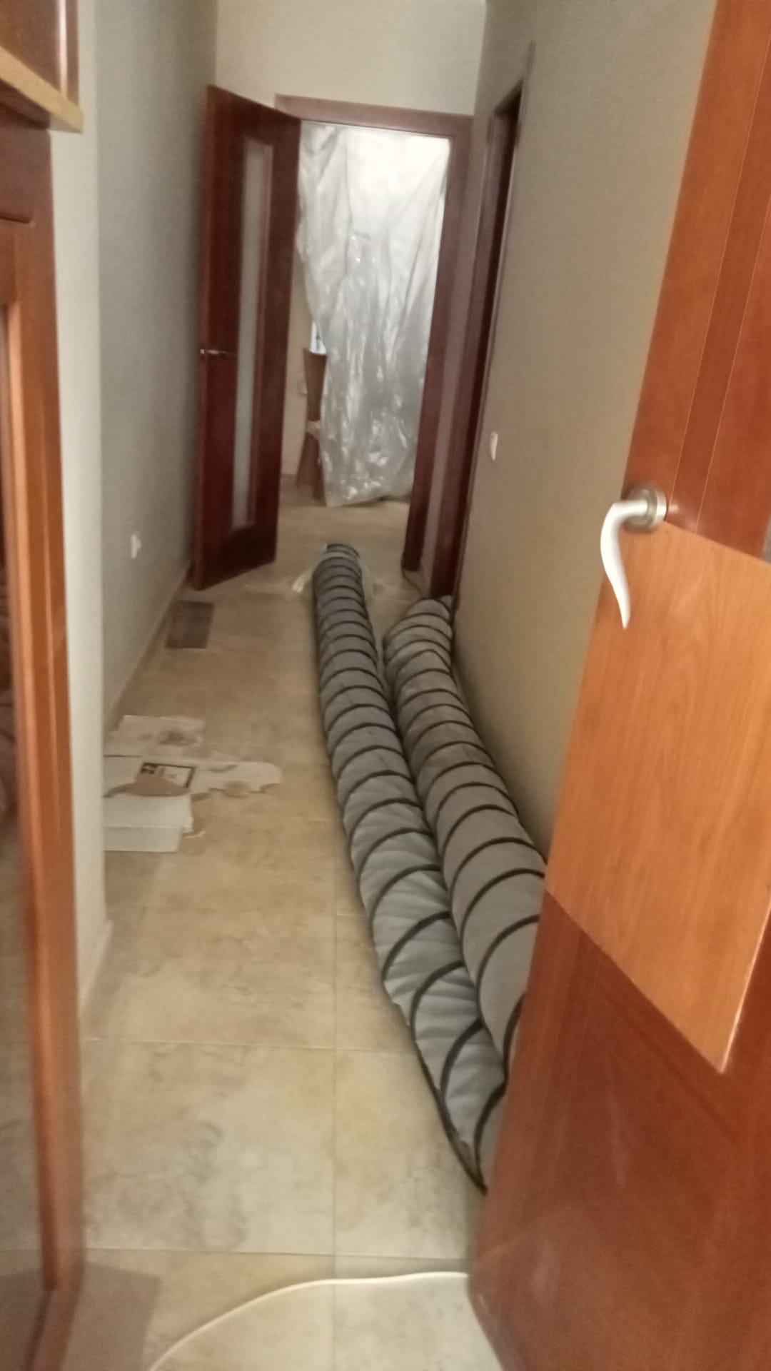 Durante la reciente riada, el nivel del agua dentro de la vivienda alcanzó una altura aproximada de 80 cm. Dos meses después del evento, se registran niveles de humedad cercanos al 20% (en peso) en los muros, lo cual excede significativamente los valores recomendados para garantizar un entorno saludable (< 1% en peso para muros de mampostería). Además, las puertas interiores de la vivienda presentan daños significativos derivados de la exposición al agua.