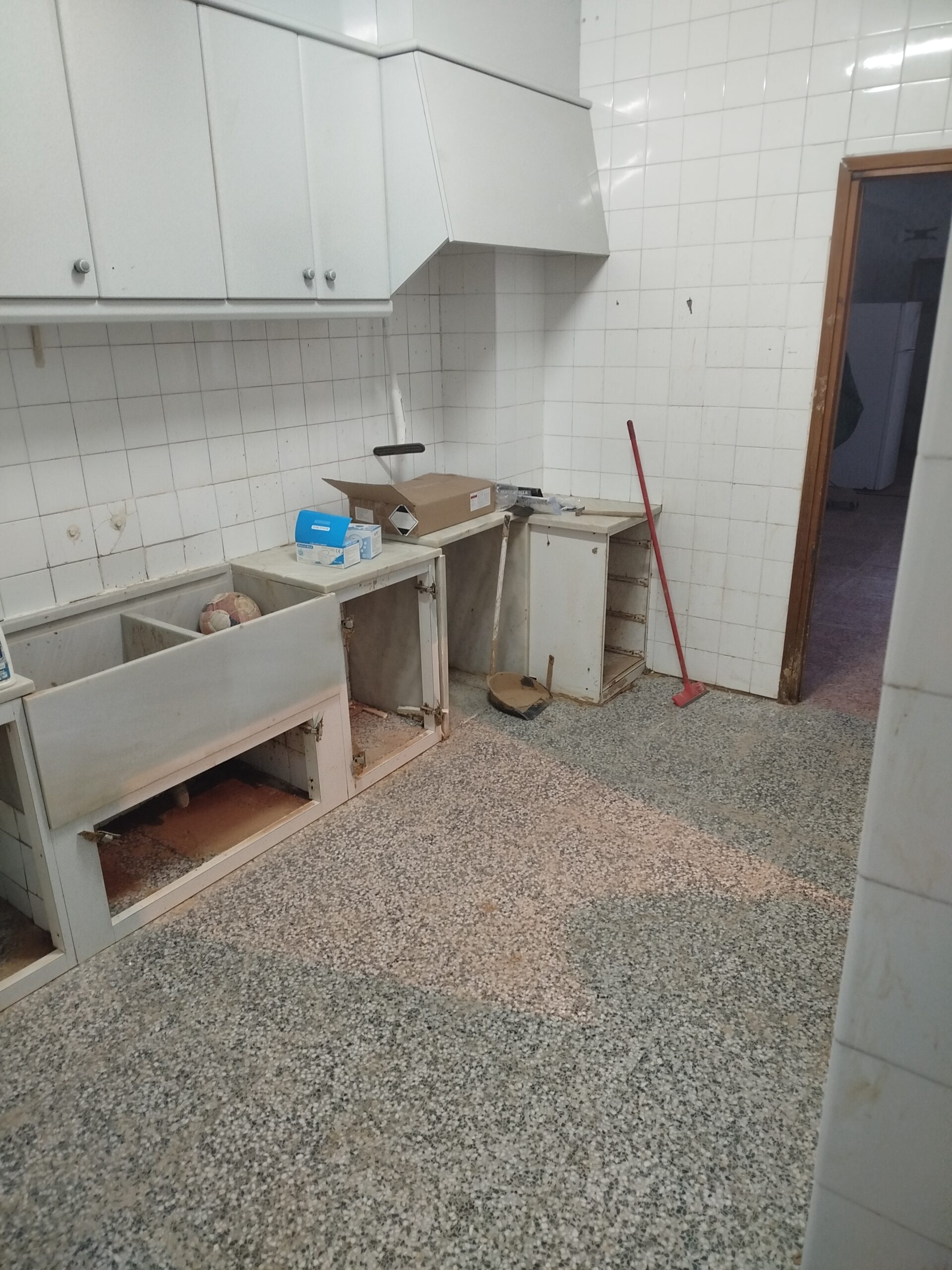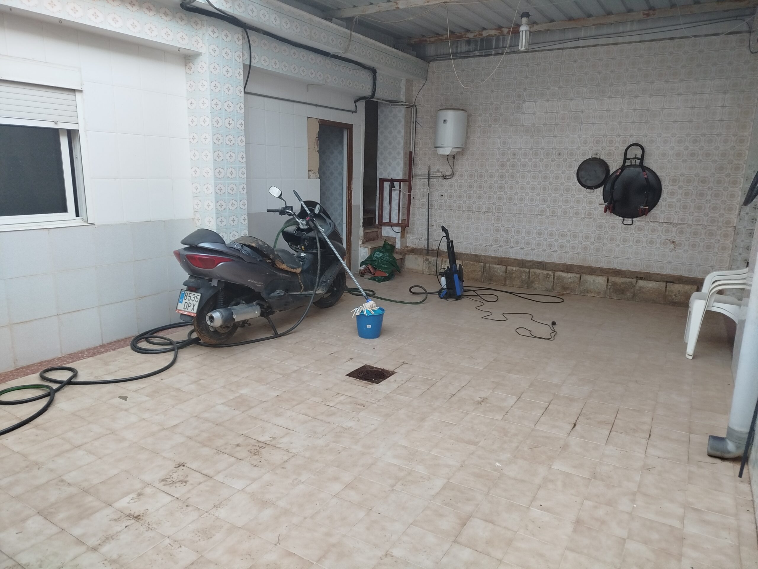Durante la reciente riada, la cercanía de la vivienda al Barranco de Chiva propició la entrada violenta de agua, ocasionando daños severos en la planimetría del suelo y afectando la totalidad de la planta baja. La altura del agua alcanzó los 120 cm, lo que ha provocado problemas de humedad generalizados en los muros, agravados por la presencia de revestimientos de azulejo en la mayoría de los paramentos verticales. Las mediciones de humedad realizadas indican valores cercanos al 20%, muy superiores al nivel recomendable para garantizar la habitabilidad (<1% en peso en muros de mampostería o ladrillo). Debido a la construcción precaria del inmueble desde su origen, los daños sufridos han intensificado su vulnerabilidad, haciendo que la vivienda resulte inhabitable en su estado actual.